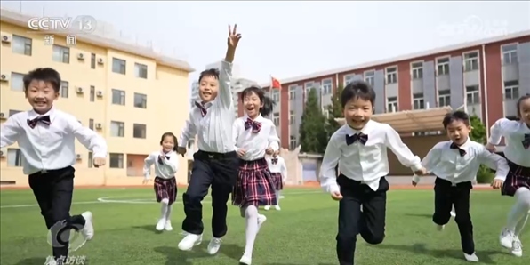 為了防止孩子過早地戴上“小眼鏡”、成為“小胖墩”,讓孩子擁有健康的體魄,近幾年,國家陸續(xù)采取了一系列具體的舉措。比如鼓勵基礎教育階段學校每天開設一節(jié)體育課,著力保障學生每天校內(nèi)、校外各一個小時體育活動時間。而在“雙減”政策實施后,許多學校也按照要求在課后給學生提供文藝、體育等延時服務。在北京市海淀區(qū)實驗小學九一分校,孩子們每天一節(jié)體育課,再加上上下午的課間操和大課間的體育鍛煉等等,一天之中孩子們的運動時間大約在80分鐘以上。