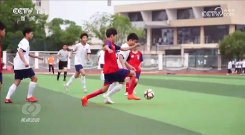 哨聲響起,江西贛州定南縣第三中學和定南縣實驗學校的球隊比賽開始了,這場比賽是為了備戰(zhàn)贛州市的初中校園足球聯(lián)賽。曾子儒代表自己的學校出戰(zhàn)。