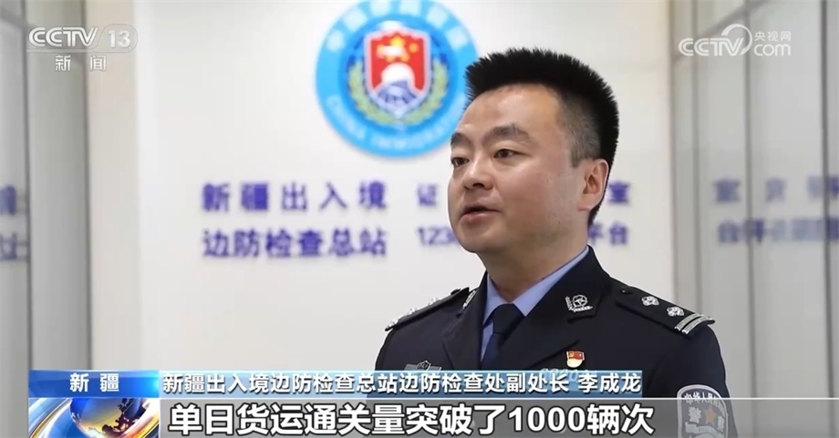 新疆出入境邊防檢查總站邊防檢查處副處長 李成龍:今年以來,霍爾果斯、阿拉山口等9個公路口岸通關(guān)量接連突破了歷史峰值,特別是霍爾果斯公路口岸,單日貨運(yùn)通關(guān)量突破了1000輛次。