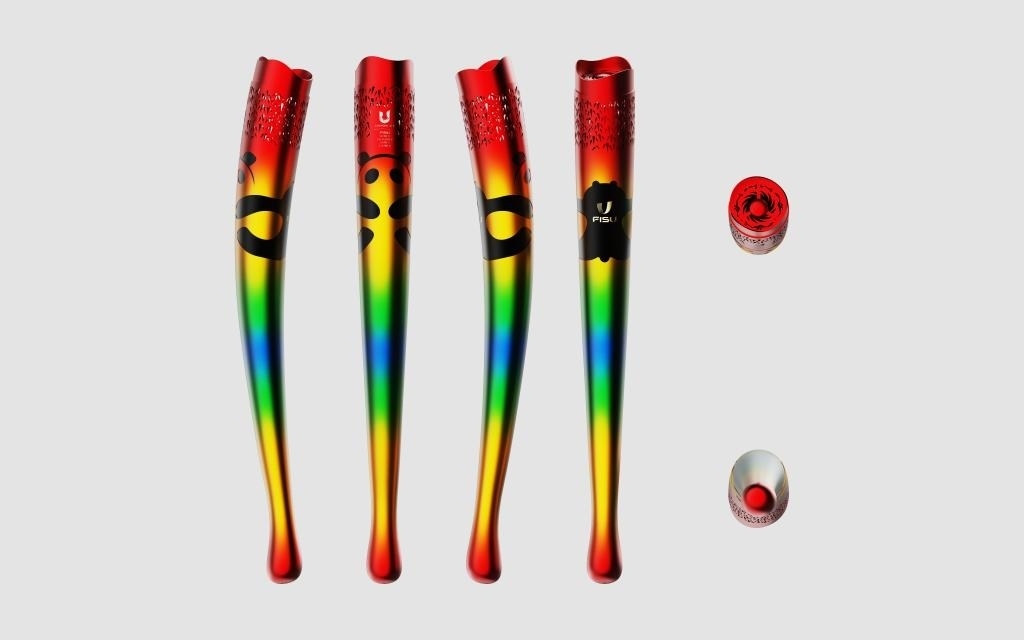 作為大型體育賽事中的一個(gè)重要象征物,火炬無(wú)疑是傳遞城市精神的重要窗口。成都大運(yùn)會(huì)火炬“蓉火”取成都的簡(jiǎn)稱“蓉”,同時(shí)寓有“融合”“包容”之意?;鹁孢\(yùn)用多彩漸變的大運(yùn)會(huì)主視覺(jué)色塊,將朱紅、明黃、翠綠、湖藍(lán)四個(gè)漸變色整合起來(lái),又呈現(xiàn)出成都熱情、活力、時(shí)尚的多彩生活與大學(xué)生的斑斕青春。