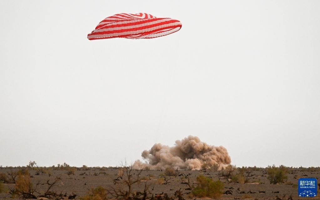 6月4日,神舟十五號(hào)載人飛船返回艙在東風(fēng)著陸場(chǎng)成功著陸。新華社記者 連振 攝