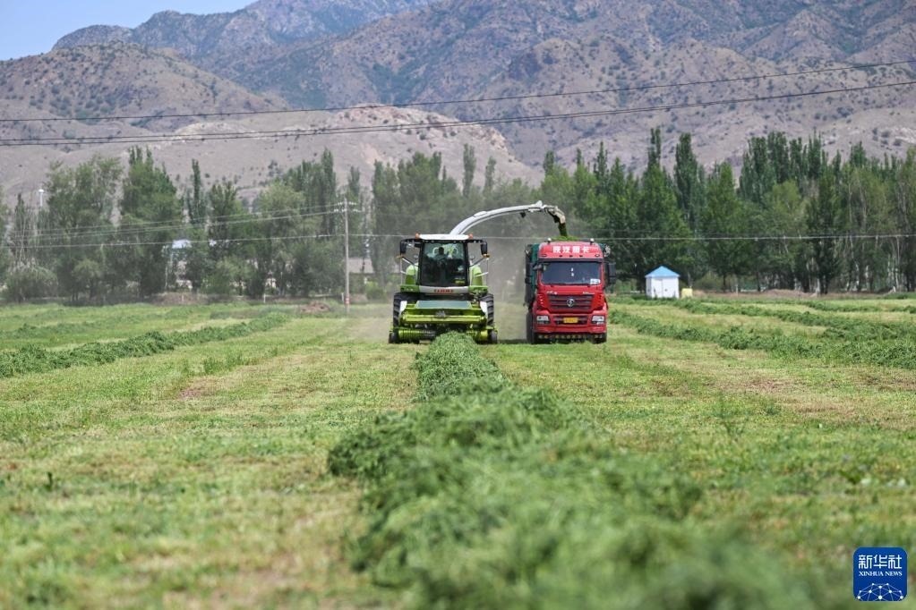 近日,內(nèi)蒙古呼和浩特市土默特左旗國(guó)家現(xiàn)代農(nóng)業(yè)示范區(qū)內(nèi),3000多畝優(yōu)質(zhì)苜蓿迎來(lái)了第一茬收割,大型機(jī)械車輛在田間忙碌。近年來(lái),呼和浩特市積極建設(shè)苜蓿產(chǎn)業(yè)化種植示范基地,增加優(yōu)質(zhì)飼草種植面積,提升優(yōu)質(zhì)飼草自給率,為奶業(yè)全產(chǎn)業(yè)鏈發(fā)展提供重要保障。