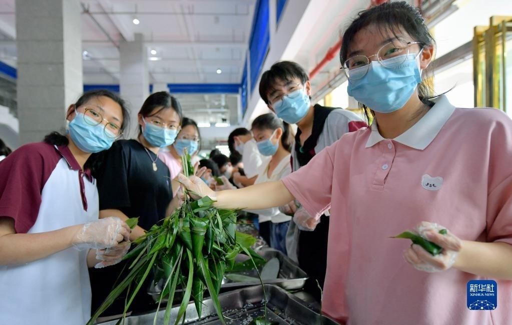 當日,湖北省恩施土家族苗族自治州宣恩縣第一高級中學組織高三學生參加傳統(tǒng)手工包粽子比賽,讓即將踏入考場的學生在親自動手體驗傳統(tǒng)文化的過程中舒緩心情、釋放壓力,以輕松的心態(tài)迎接高考。
