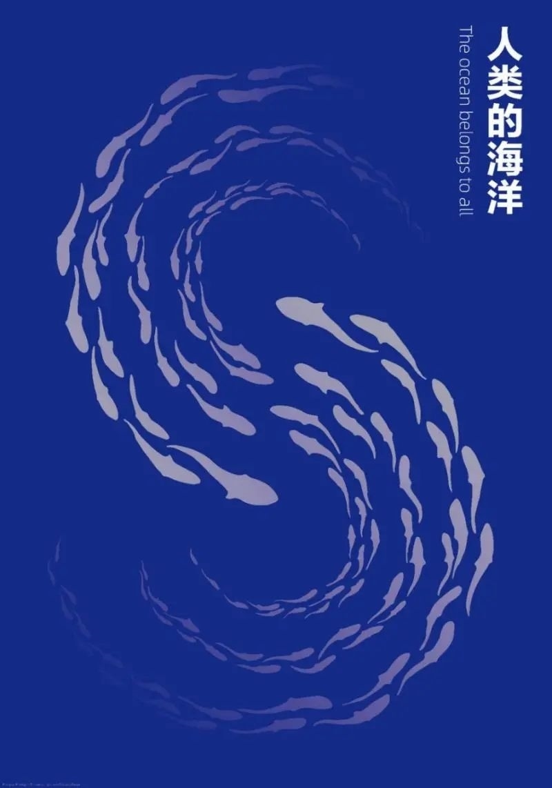 《人類(lèi)的海洋》采用“S”形魚(yú)群為基本骨架,魚(yú)群錯(cuò)落交織游向海洋深處,寓意良好的海洋生態(tài)環(huán)境對(duì)魚(yú)群等海洋生物穩(wěn)定棲息的益處。造福于海洋,同時(shí)也是造福于人類(lèi)。