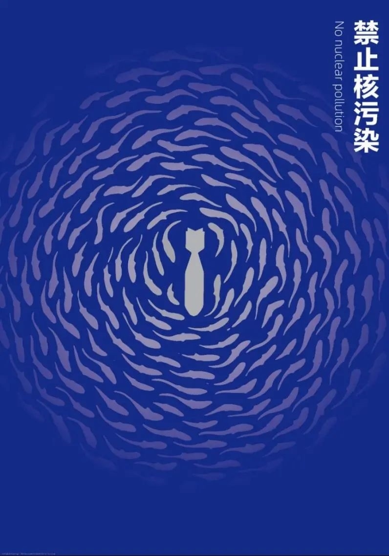 《禁止核污染》以爆炸的核彈呈現(xiàn)的煙霧為視覺(jué)形象載體,將煙霧元素進(jìn)行提取簡(jiǎn)化,加強(qiáng)設(shè)計(jì)語(yǔ)言。寓意核污染對(duì)生態(tài)環(huán)境的破壞,呼吁環(huán)境共生的主旨。