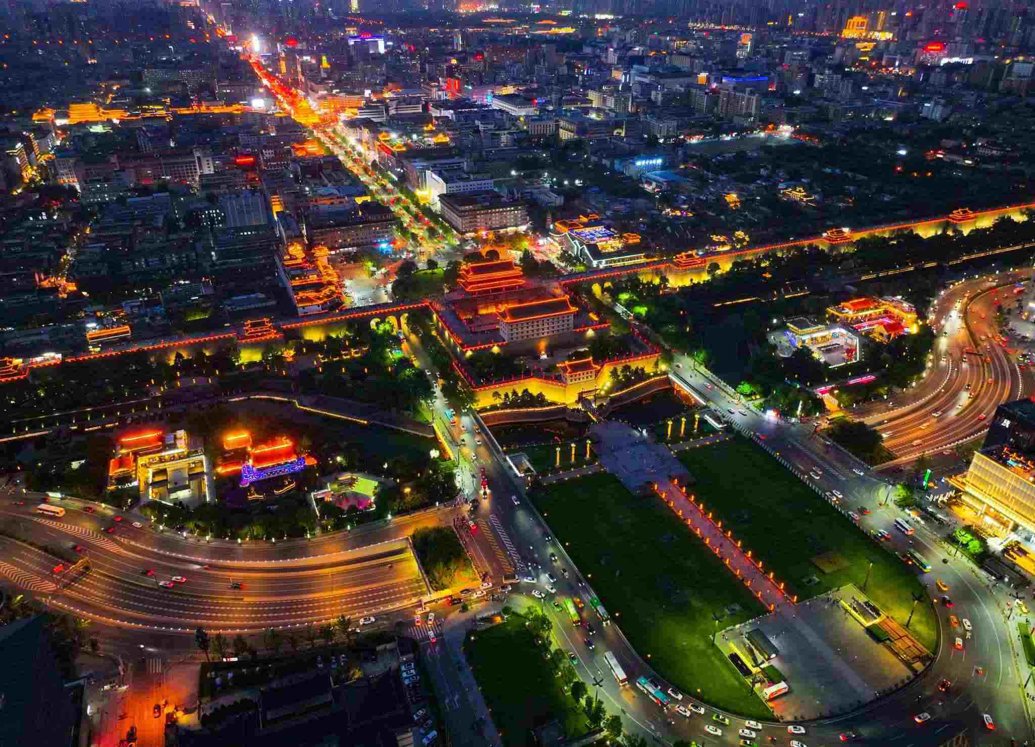 2023年6月8日,西安南門城墻及中軸線夜景。視覺中國(guó)