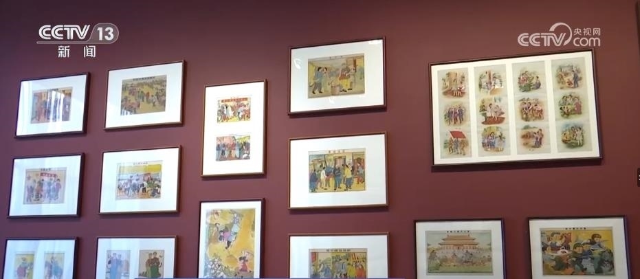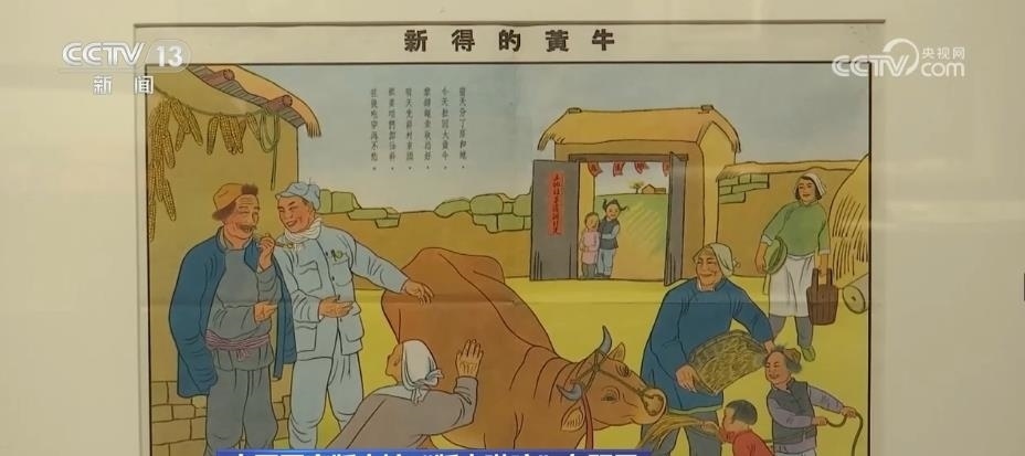 跟隨著講解員,再往前走,國(guó)家版本館的特色館藏——年畫(huà)、連環(huán)畫(huà)和宣傳畫(huà)出現(xiàn)在眼前。這面墻上和展柜集中展出了47幅新中國(guó)成立初期的新年畫(huà)。畫(huà)家李可染在1950年創(chuàng)作的《新得的黃?!返茸髌罚宫F(xiàn)出老百姓感受到新中國(guó)新生活的幸福和美好。