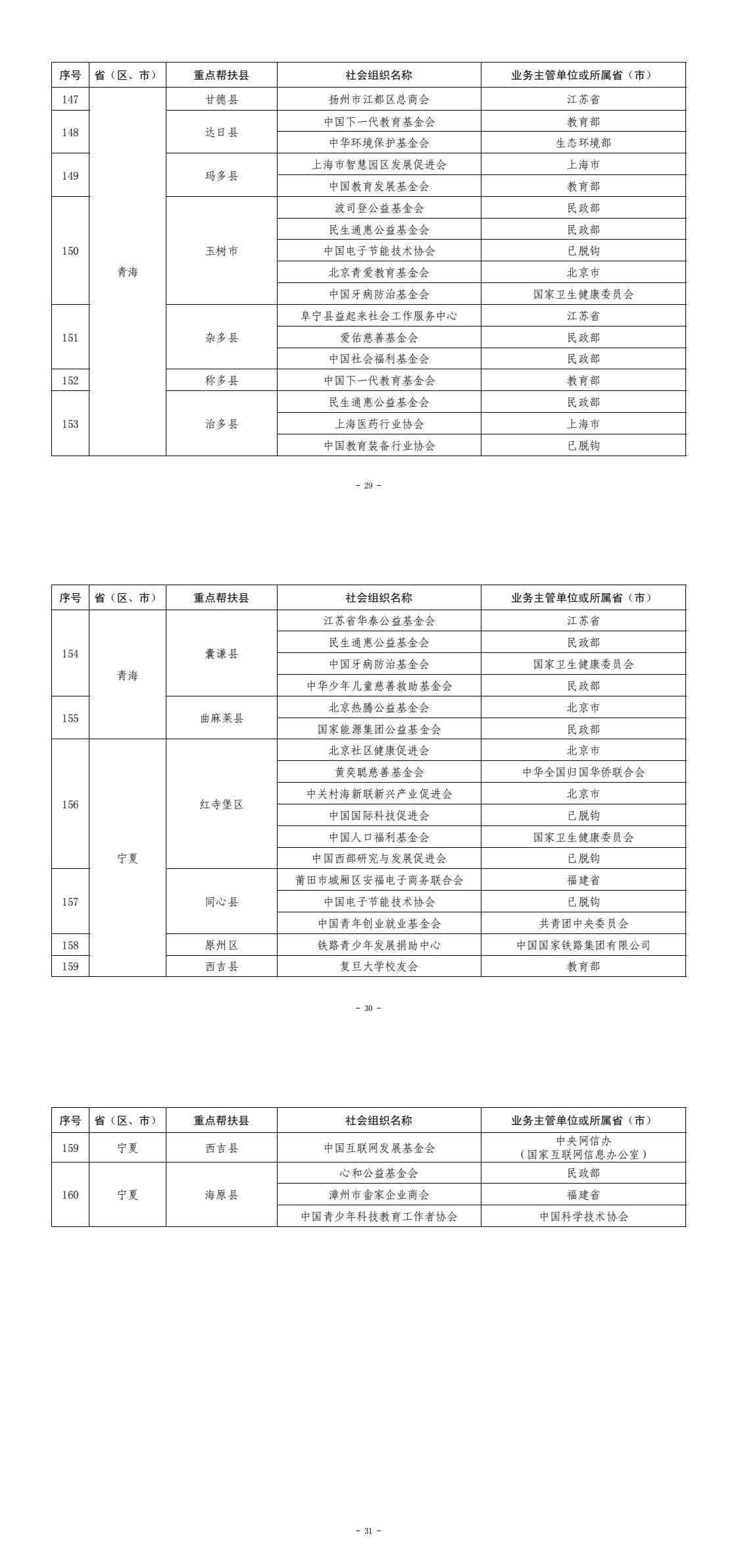 央視網(wǎng)消息:據(jù)民政部網(wǎng)站消息,為深入貫徹落實黨的二十大決策部署,根據(jù)《社會組織助力鄉(xiāng)村振興專項行動方案》,民政部、國家鄉(xiāng)村振興局在社會組織自愿報名、有關部門推薦申報、160個國家鄉(xiāng)村振興重點幫扶縣同意對接的基礎上,形成了《全國性社會組織、東部?。ㄖ陛犑校┥鐣M織與160個國家鄉(xiāng)村振興重點幫扶縣結對幫扶名單》(見附件),現(xiàn)予印發(fā)執(zhí)行,有關工作通知如下。