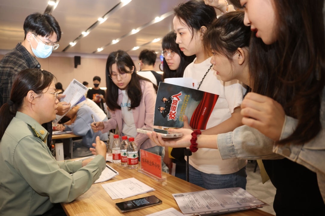 這次洽談活動(dòng),讓學(xué)生們更加詳細(xì)了解了文職人員的職能定位、使命任務(wù)以及隊(duì)伍建設(shè)情況。就讀于該校外國(guó)語(yǔ)學(xué)院英語(yǔ)口譯專業(yè)的碩士研究生梁玉靜說(shuō):“我讀本科時(shí)就報(bào)名參軍了,由于種種原因沒能如愿,這次你們來(lái)洽談?dòng)纸o了我機(jī)會(huì),真希望能通過(guò)這次活動(dòng)走進(jìn)夢(mèng)想中的軍營(yíng),為國(guó)防和軍隊(duì)建設(shè)做貢獻(xiàn)?!?/p>