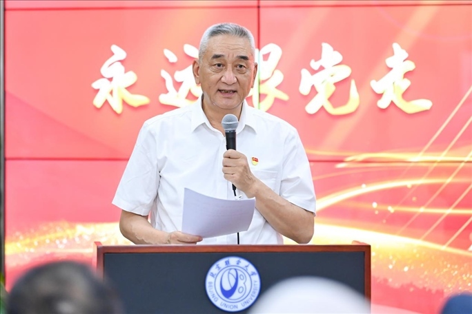 觀展后,參會嘉賓與管理學院200多名學生黨員及入黨積極分子在南院報告廳,共同開展“同上一堂主題教育專題黨課,在黨的旗幟下勝利前進”黨課活動。此次講座由管理學院黨委書記張玲娜主持,由北京新四軍暨華中抗日根據(jù)地研究會原副會長劉華蘇主講。