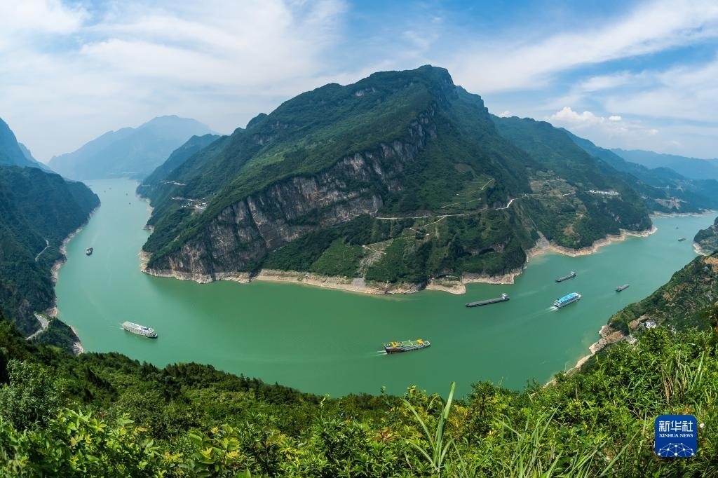 6月10日,船舶從湖北省宜昌市秭歸縣木魚(yú)島外沿水域駛過(guò)(無(wú)人機(jī)照片)。