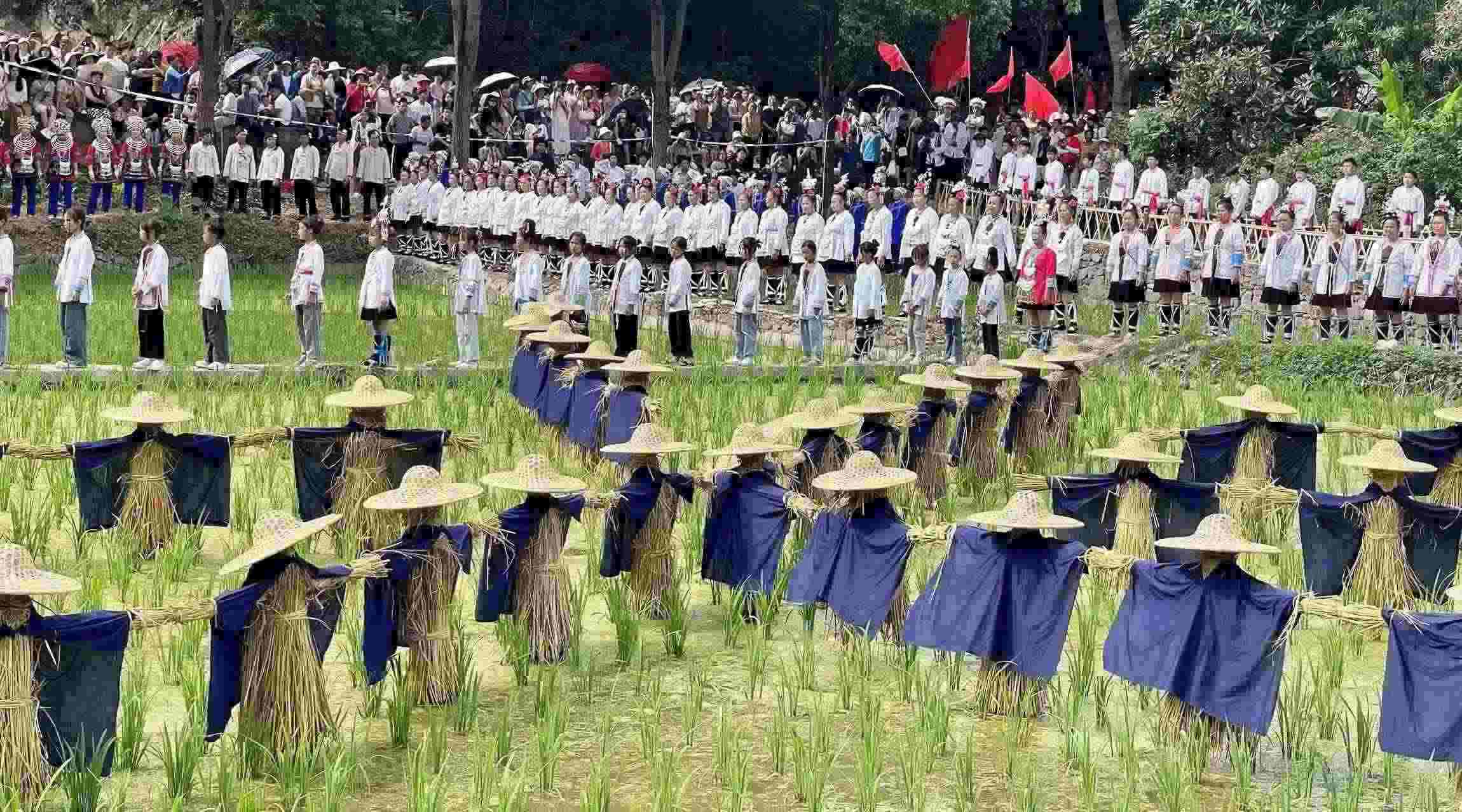 2023年6月10日,侗族同胞在貴州省黎平縣肇興侗寨田園實(shí)景展示侗族大歌。 (寧堅(jiān) 鄧永生)