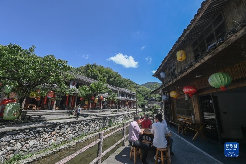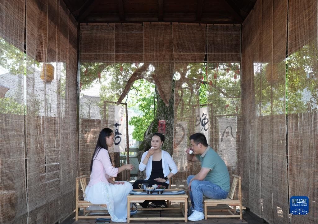 人們在浙江臺州黃巖區(qū)嶼頭鄉(xiāng)布袋坑村的溪水旁喝茶(5月30日攝)。近年來,嶼頭鄉(xiāng)堅(jiān)持黨建引領(lǐng),以全域旅游和美麗鄉(xiāng)村建設(shè)為重要抓手,引進(jìn)文化創(chuàng)意團(tuán)隊(duì),為鄉(xiāng)村旅游注入更加年輕化的元素,推進(jìn)特色民宿以及布袋山饅頭、溪坑魚等農(nóng)特產(chǎn)品的發(fā)展,帶動鄉(xiāng)村振興和百姓共富。新華社記者 徐昱 攝