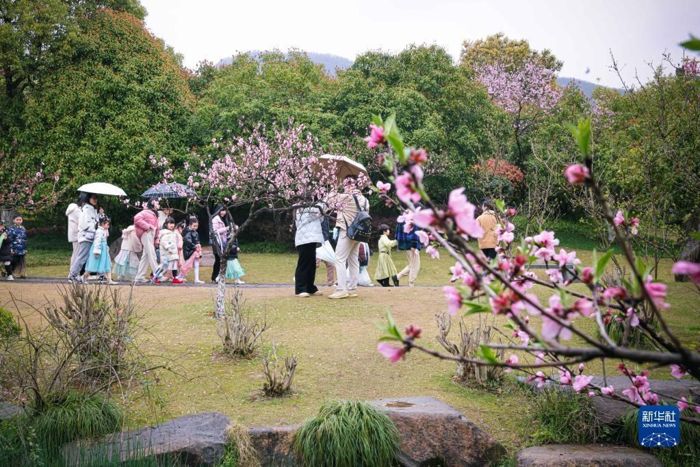 游客在浙江杭州丁蘭街道皋城村的桃園內(nèi)游園賞花(3月25日攝)。近年來,杭州丁蘭街道皋城村在改善村容村貌、建設(shè)美麗鄉(xiāng)村的基礎(chǔ)上發(fā)展鄉(xiāng)村旅游業(yè),促進(jìn)鄉(xiāng)村文旅融合。新華社記者 江漢 攝