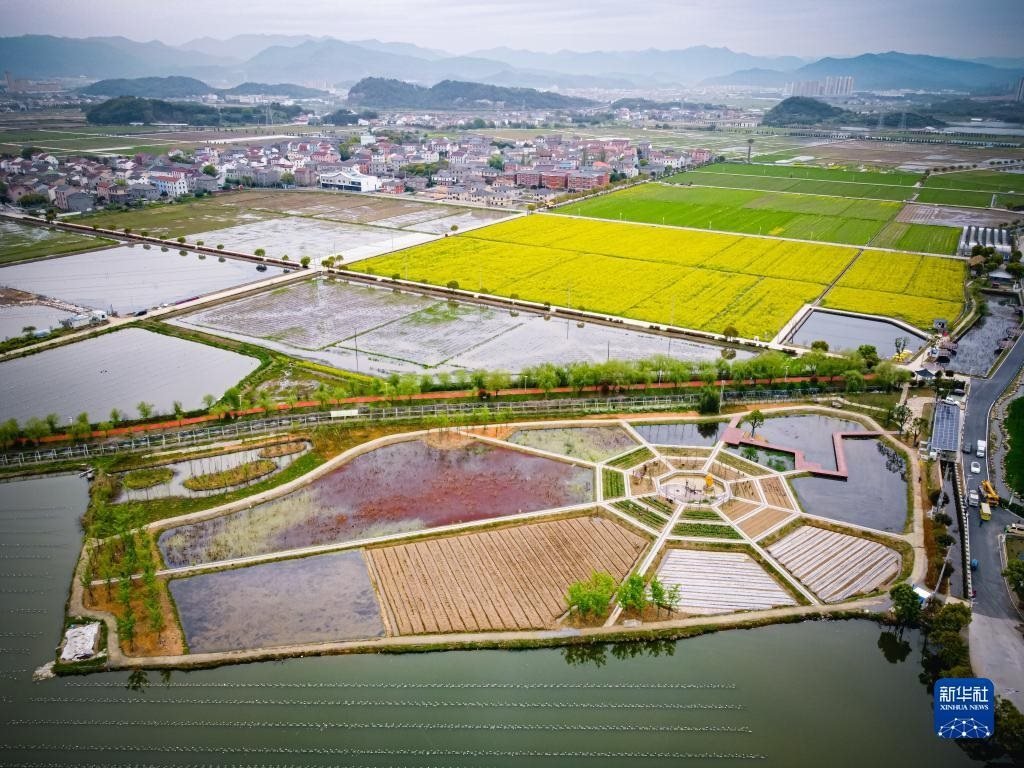 浙江諸暨楓橋鎮(zhèn)杜黃新村農(nóng)耕體驗(yàn)研學(xué)基地(無人機(jī)照片,3月29日攝)。近年來,當(dāng)?shù)赝瞥鍪喾N農(nóng)事特色體驗(yàn)項(xiàng)目,著力打造“田上杜黃”這一文旅品牌。新華社記者 江漢 攝