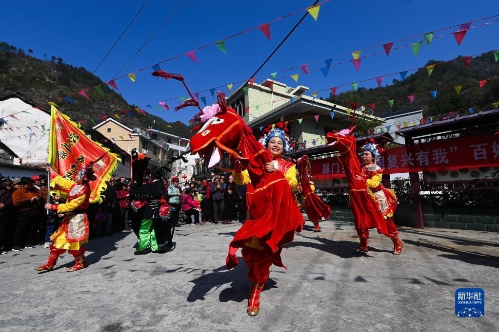 浙江杭州淳安縣屏門鄉(xiāng)屏前村傳統(tǒng)廟會上的竹馬表演(3月10日攝)。近年來,屏門鄉(xiāng)當(dāng)?shù)貙⒚袼妆硌?、踏青賞春、農(nóng)家特產(chǎn)展賣等融入傳統(tǒng)廟會中,成為美麗山鄉(xiāng)的春季熱鬧“大戲”,助力鄉(xiāng)村文旅融合發(fā)展和共同富裕。新華社記者 徐昱 攝