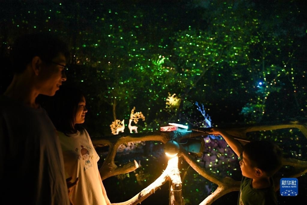 在浙江紹興新昌縣鏡嶺鎮(zhèn),游客在體驗(yàn)山區(qū)夜游項(xiàng)目(5月4日攝)。新華社記者 翁忻旸 攝