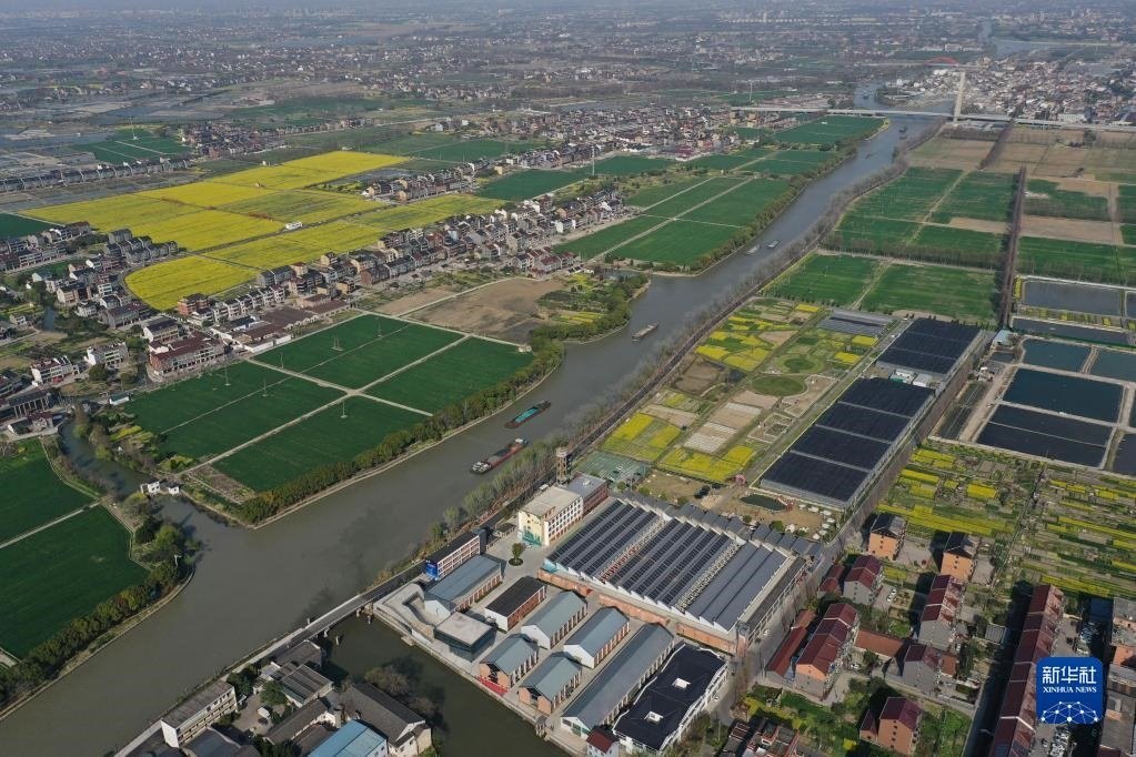 浙江杭州臨平區(qū)京杭大運(yùn)河沿岸的村莊(無人機(jī)照片,3月15日攝)。新華社記者 黃宗治 攝