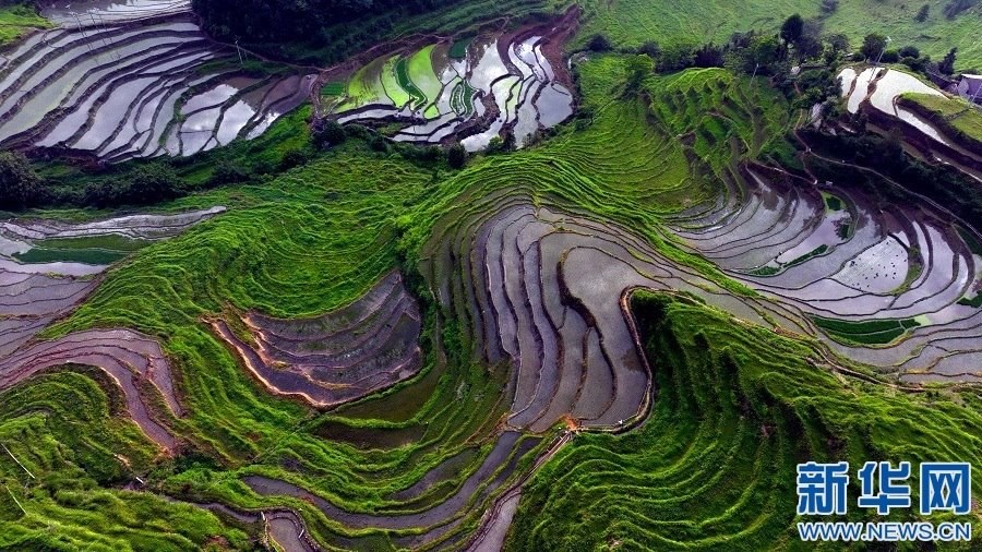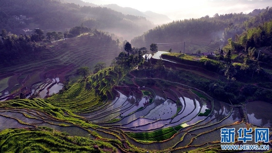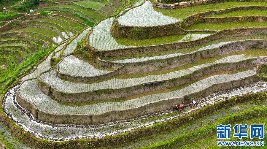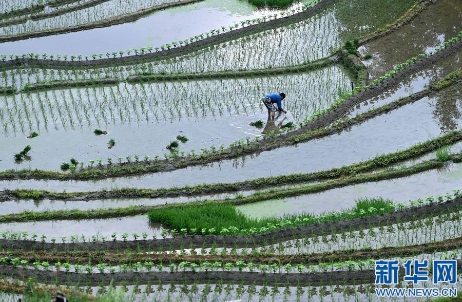 近日,江西省宜春市萬(wàn)載縣高村鎮(zhèn)新竹村村民在高山梯田勞作,忙碌的身影與層層疊疊的梯田交相輝映。新華網(wǎng)發(fā) 鄧龍華 攝