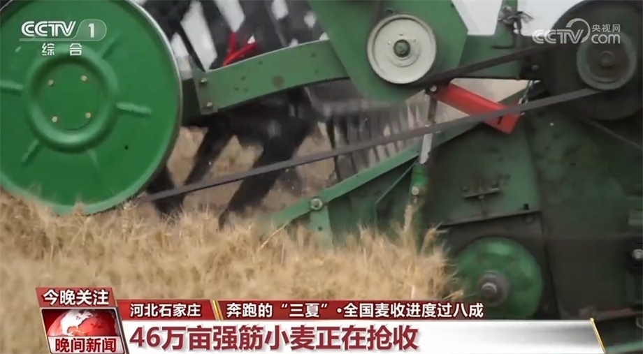 河北省石家莊市藁城區(qū)的46萬畝強(qiáng)筋小麥正在搶收,今年這里的小麥進(jìn)一步推行規(guī)模化種植、標(biāo)準(zhǔn)化生產(chǎn)、專業(yè)化收儲。