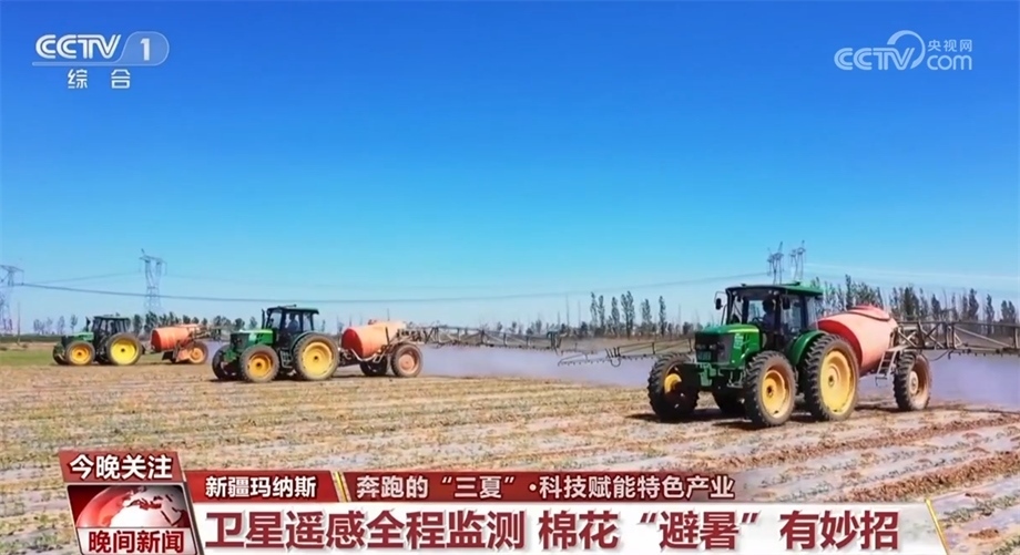眼下,新疆昌吉瑪納斯縣的棉花正值現(xiàn)蕾期?,F(xiàn)蕾期指的是出現(xiàn)花蕾到開花這一段時間,這個時候棉株生長最快,然而持續(xù)的高溫給田間管理帶來考驗。在瑪納斯縣樂土驛鎮(zhèn)的棉花田里,三臺裝有北斗導(dǎo)航系統(tǒng)的大馬力拖拉機(jī)正按照預(yù)先設(shè)定的線路進(jìn)行除草作業(yè)。這是農(nóng)技人員通過衛(wèi)星遙感棉花全程監(jiān)測技術(shù),幫種植戶制定的科學(xué)田管方案。