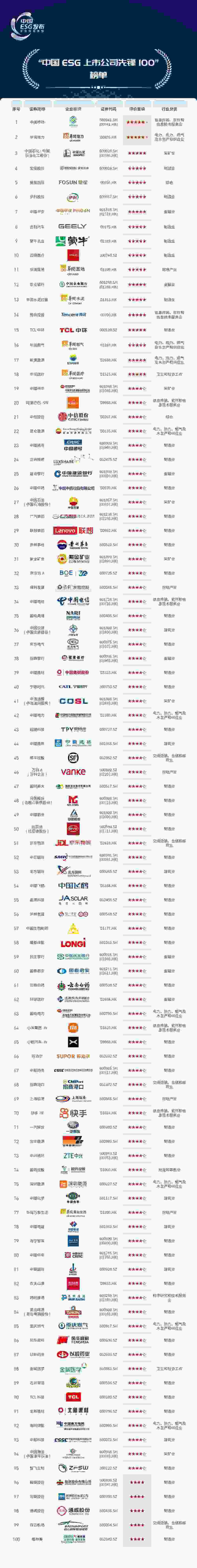“中國ESG上市公司先鋒100”企業(yè)