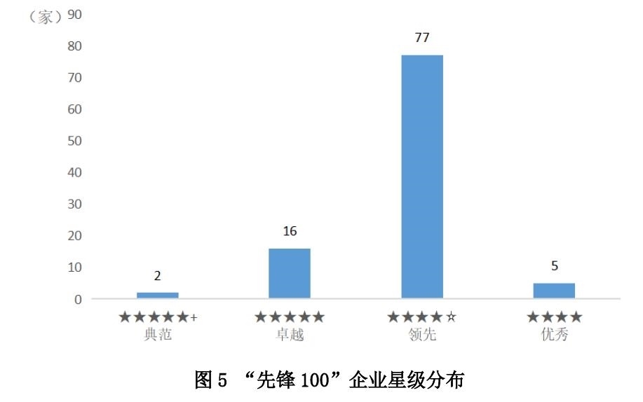 “先鋒100”企業(yè)ESG指數平均得分高達75.8分,整體處于領先水平,全面領跑中國上市公司可持續(xù)發(fā)展。其中,2家公司處于五星佳級水平,是上市公司ESG發(fā)展的典范者;16家處于五星級水平,是上市公司ESG發(fā)展的卓越者;77家處于四星半級水平,是上市公司ESG發(fā)展的領先者;5家處于四星級水平,具有優(yōu)秀的ESG整體表現。當前,ESG在中國已進入加速發(fā)展時期,在監(jiān)管部門、投資機構、評級機構、研究機構等多方力量的推進下,頭部上市公司對ESG的認知顯著提升,對ESG工作的重視程度日益提高。