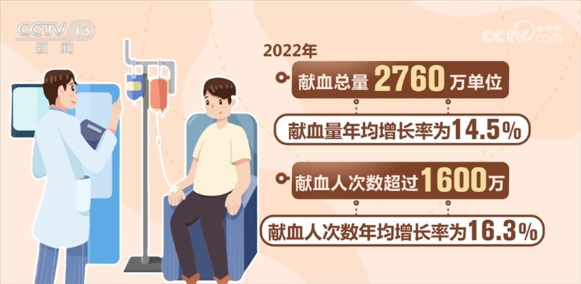 國(guó)家衛(wèi)生健康委相關(guān)負(fù)責(zé)人表示,我國(guó)無(wú)償獻(xiàn)血工作目前已形成了“政府主導(dǎo)、部門協(xié)作、社會(huì)支持、公眾參與”的格局,無(wú)償獻(xiàn)血制度全面建立,血液管理制度和規(guī)范標(biāo)準(zhǔn)體系不斷完善。全國(guó)建立了橫向到邊、縱向到底的血站采供血服務(wù)體系。全國(guó)共建設(shè)血站453家,形成以省級(jí)血液中心為龍頭、地市級(jí)中心血站為主體、中心血庫(kù)為補(bǔ)充的血站服務(wù)體系。我國(guó)血液安全保障水平大幅提升。全國(guó)無(wú)償獻(xiàn)血人次數(shù)和獻(xiàn)血量實(shí)現(xiàn)20多年持續(xù)增長(zhǎng),千人口獻(xiàn)血率由1998年的4.8提升至2022年11.5,2022年獻(xiàn)血總量2760萬(wàn)單位,獻(xiàn)血量年均增長(zhǎng)率為14.5%。2022年獻(xiàn)血人次數(shù)超過1600萬(wàn),獻(xiàn)血人次數(shù)年均增長(zhǎng)率為16.3%。今年1—5月,獻(xiàn)血人次數(shù)和獻(xiàn)血量比去年同期增長(zhǎng)7.7%和6%。