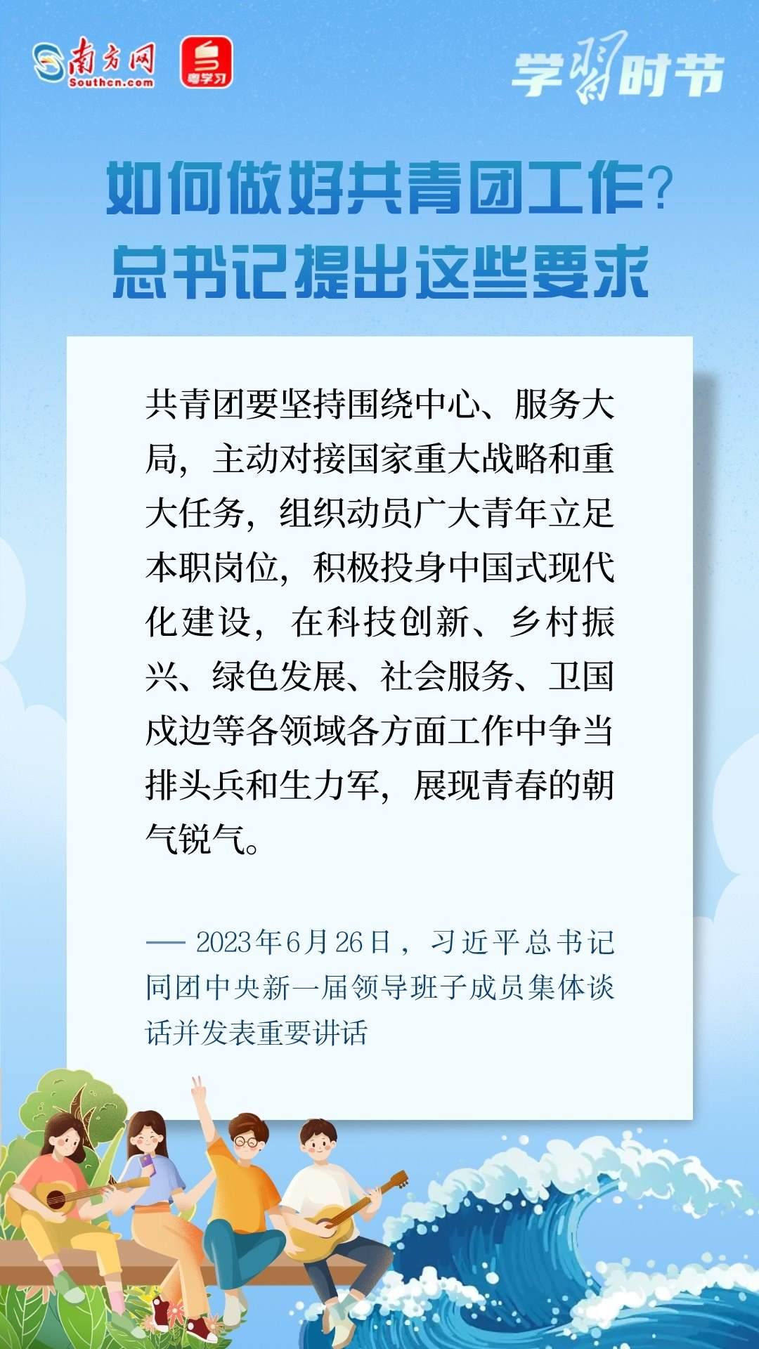 6月26日,習(xí)近平總書記同團(tuán)中央新一屆領(lǐng)導(dǎo)班子成員集體談話并發(fā)表重要講話。總書記強調(diào),黨和國家事業(yè)的希望寄托在青年身上。希望共青團(tuán)中央深入貫徹黨中央要求,切實肩負(fù)起新時代新征程黨賦予的使命任務(wù),傳承弘揚優(yōu)良傳統(tǒng),堅持改革創(chuàng)新,更好把青年一代團(tuán)結(jié)凝聚在黨的周圍,為推進(jìn)強國建設(shè)、民族復(fù)興偉業(yè)接續(xù)奮斗。
