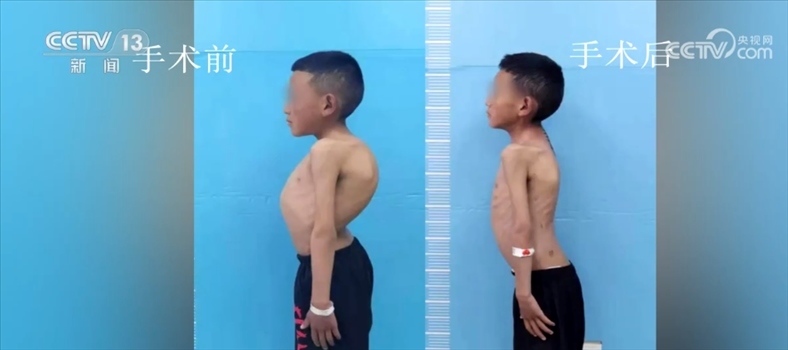 北京大學(xué)人民醫(yī)院脊柱外科主任 劉海鷹:另外這兩個(gè)特別重的孩子,我們做的頭盆環(huán)牽引,牽引上以后,先到康復(fù)醫(yī)院那邊,定期給它一點(diǎn)一點(diǎn)撐開,差不多兩三個(gè)月以后,撐到一定程度以后,把胸腔都打開了,肺功能也改善了以后,對(duì)于麻醉對(duì)于手術(shù)來(lái)說(shuō)更安全,另外對(duì)于神經(jīng)功能也比較安全了,在這種前提下我們做一個(gè)固定的矯正的手術(shù)。預(yù)期來(lái)說(shuō),矯正70%-80%應(yīng)該沒(méi)問(wèn)題,矯正到外表上基本上看不見。