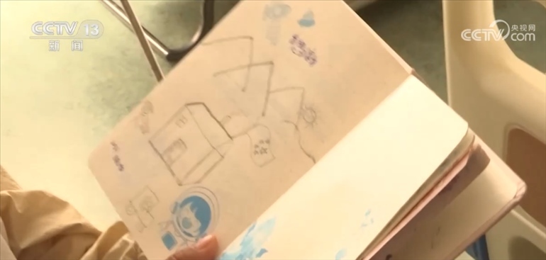 住院的時(shí)候,貢桑把對(duì)家鄉(xiāng)的思念融入了這幅畫中,遠(yuǎn)處的小房子是她的家,房子上掛著五星紅旗,她的妹妹和家人都是她心里最深的牽掛。
