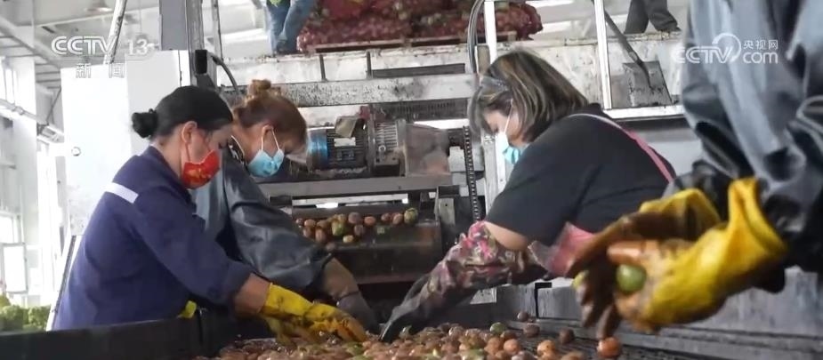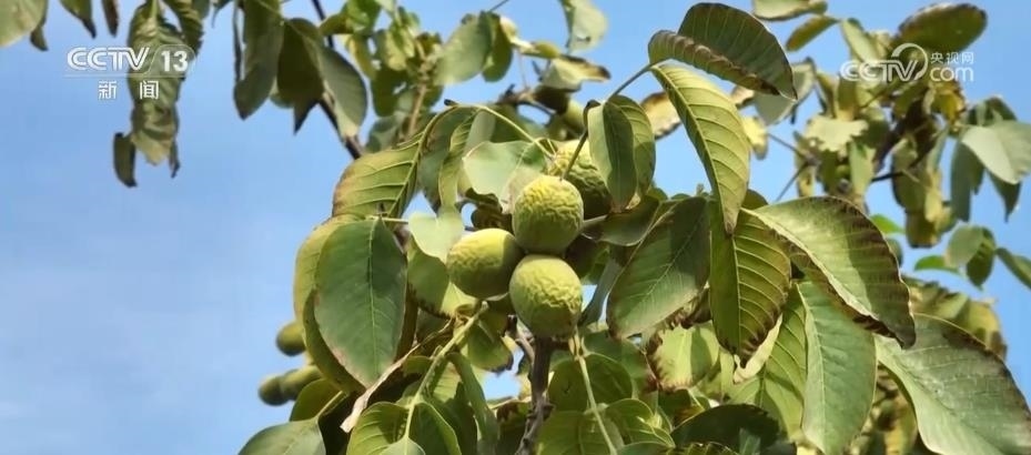 總臺(tái)記者 卜鵬:這里是位于新疆阿克蘇地區(qū)溫宿縣的一處核桃種植基地,這段時(shí)間正是當(dāng)?shù)睾颂页墒觳烧募竟?jié)。這些核桃樹上,一顆顆青綠渾圓的核桃掛滿枝頭,而在核桃樹底下,當(dāng)?shù)氐墓r(nóng)們正在抓緊撿收被抖落的核桃。為什么說是被抖落的核桃而不是被敲落的核桃?那是因?yàn)椋诋?dāng)?shù)匾恍┓N植面積比較大的核桃基地里,當(dāng)?shù)氐墓r(nóng)會(huì)選擇利用農(nóng)業(yè)機(jī)械輔助抖動(dòng)樹干的方式來采收核桃。采收的時(shí)候,果農(nóng)們會(huì)把繩索捆綁在核桃樹上,負(fù)責(zé)機(jī)械操作的師傅會(huì)根據(jù)樹枝的粗細(xì)來掌握和控制抖動(dòng)的力度,這樣就能夠避免因?yàn)橛昧^猛而對(duì)樹枝產(chǎn)生傷害。經(jīng)過機(jī)器的搖擺,核桃就會(huì)接二連三落在地上,相比于人工采摘,機(jī)械采摘的方式效率會(huì)更高。