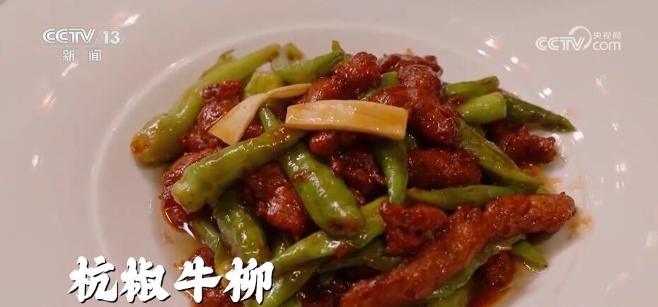 杭州文廣記者 朱敏:嘗一嘗乾隆愛吃的魚頭是什么味道,入口即化,滿滿的杭州味。杭椒牛柳,牛柳也是非常酥嫩。