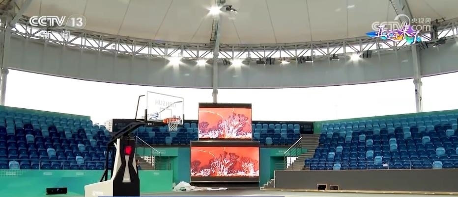 總臺(tái)央視記者 任梅梅:這里就是位于浙江德清的此次杭州亞運(yùn)會(huì)三人制籃球項(xiàng)目的比賽場(chǎng)館。整個(gè)場(chǎng)館是鋼結(jié)構(gòu)的建筑,正式比賽場(chǎng)地位于整個(gè)建筑的屋頂。這里可容納1009名觀眾現(xiàn)場(chǎng)觀賽,在場(chǎng)地的中央吊頂處,還有4臺(tái)非常清晰的顯示屏,屆時(shí)將實(shí)時(shí)播出賽場(chǎng)情況。三人制籃球比賽場(chǎng)地為15米×11米,不到常規(guī)籃球場(chǎng)的一半。