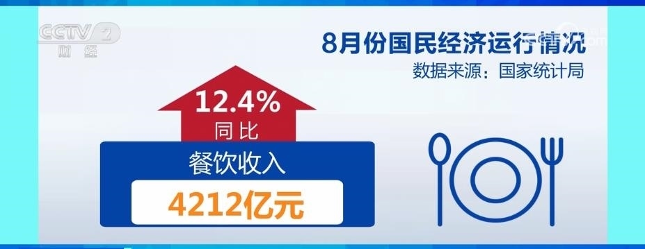 市場銷售加快恢復(fù),8月份,社會(huì)消費(fèi)品零售總額37933億元,同比增長4.6%,增速比上月加快;餐飲收入4212億元,同比增長12.4%,保持較快增速。