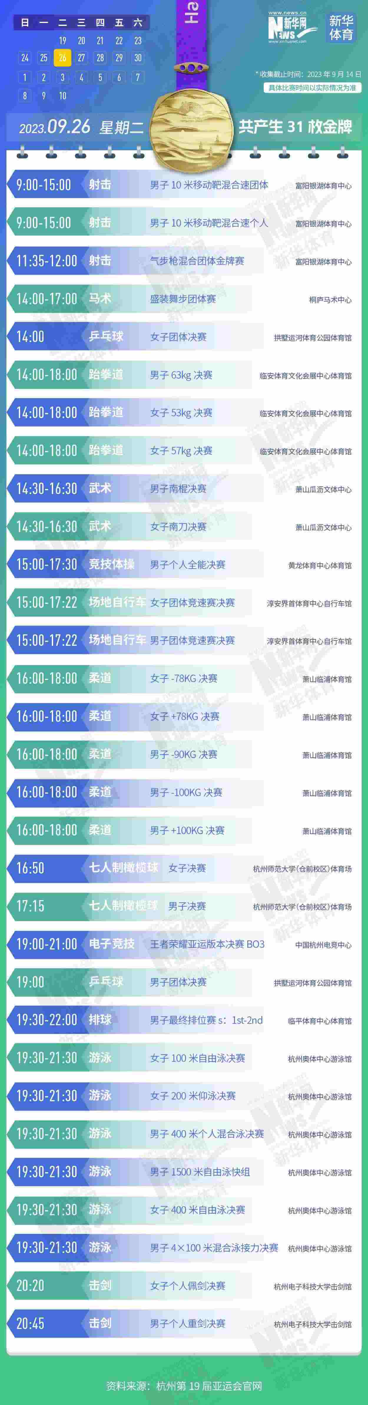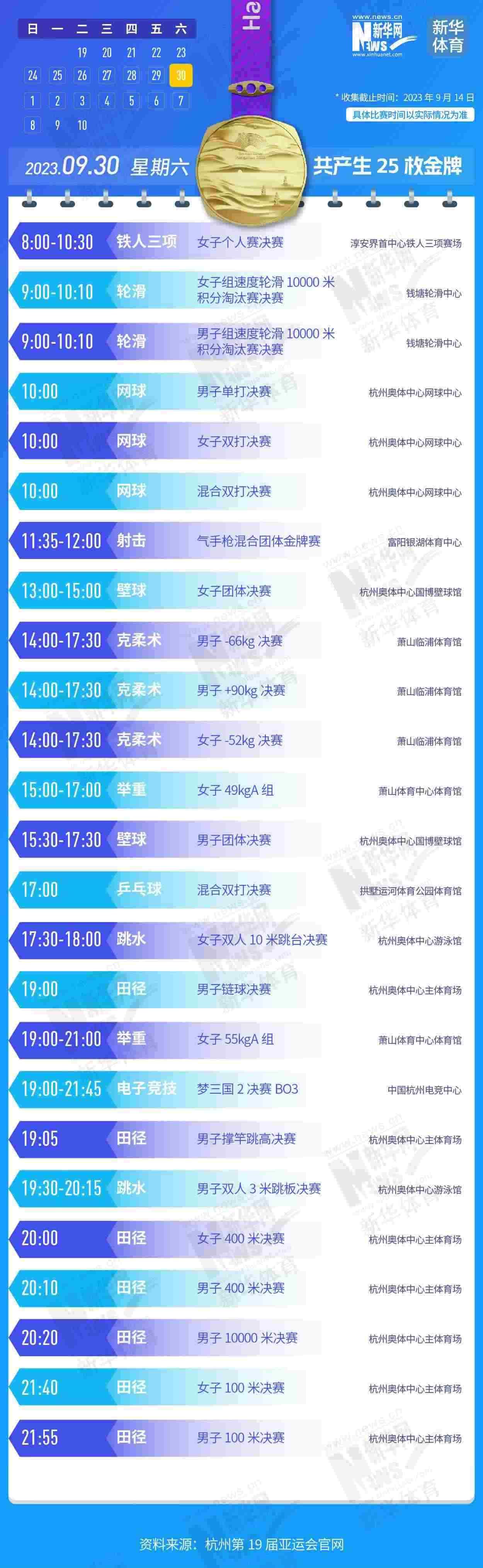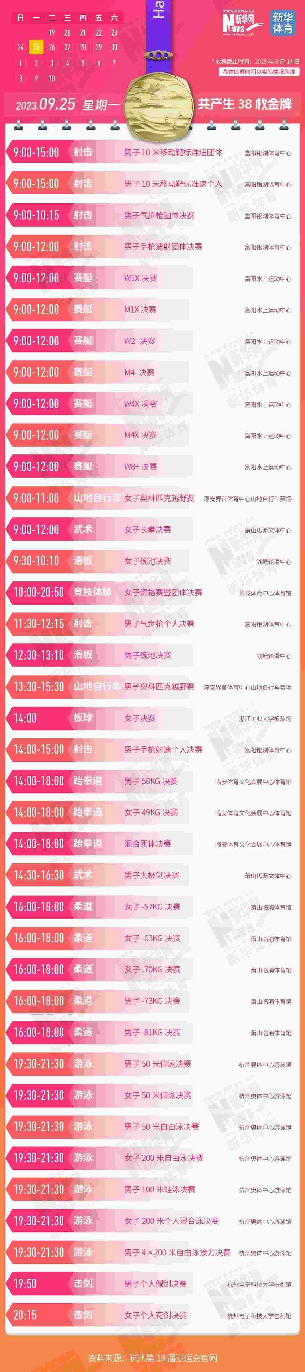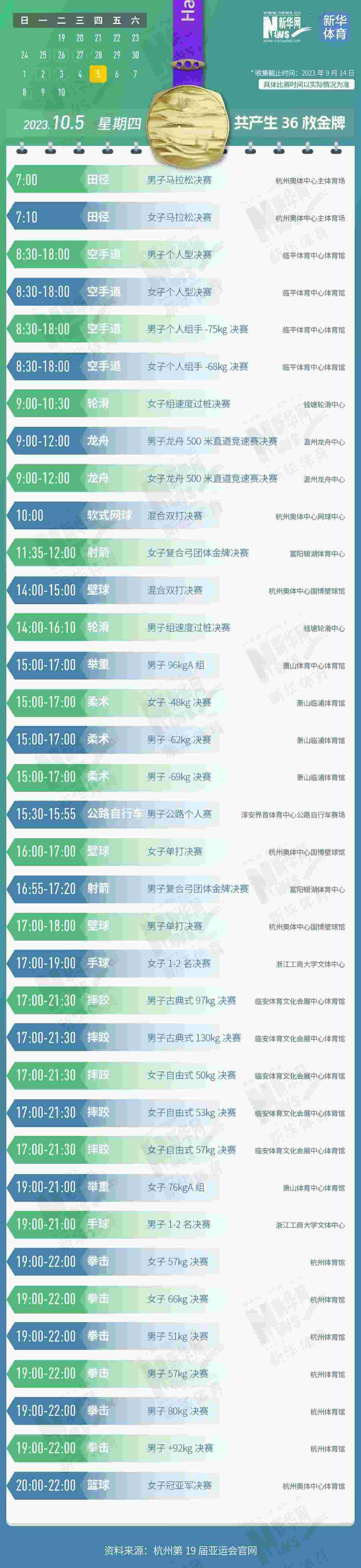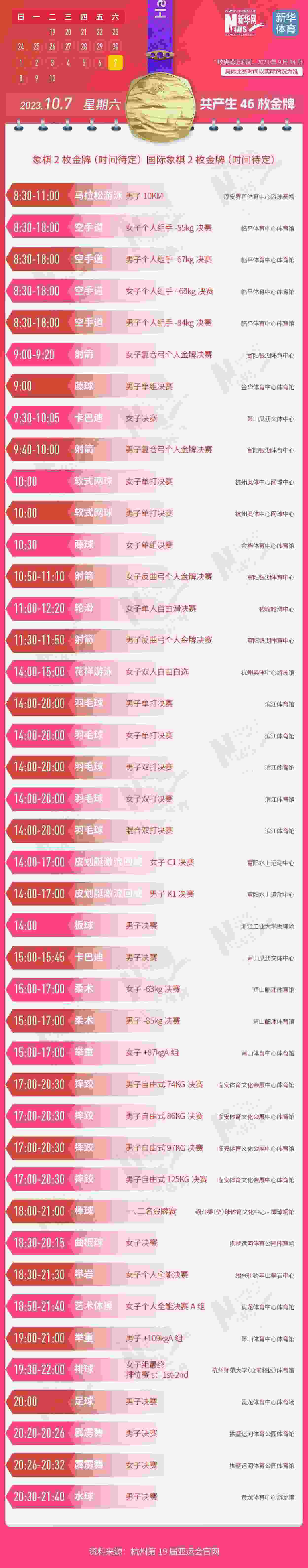 杭州第19屆亞運(yùn)會(huì)即將開(kāi)幕。本屆亞運(yùn)會(huì)將產(chǎn)生481枚金牌,快收藏這份金牌賽事日歷,助你精準(zhǔn)觀(guān)賽!