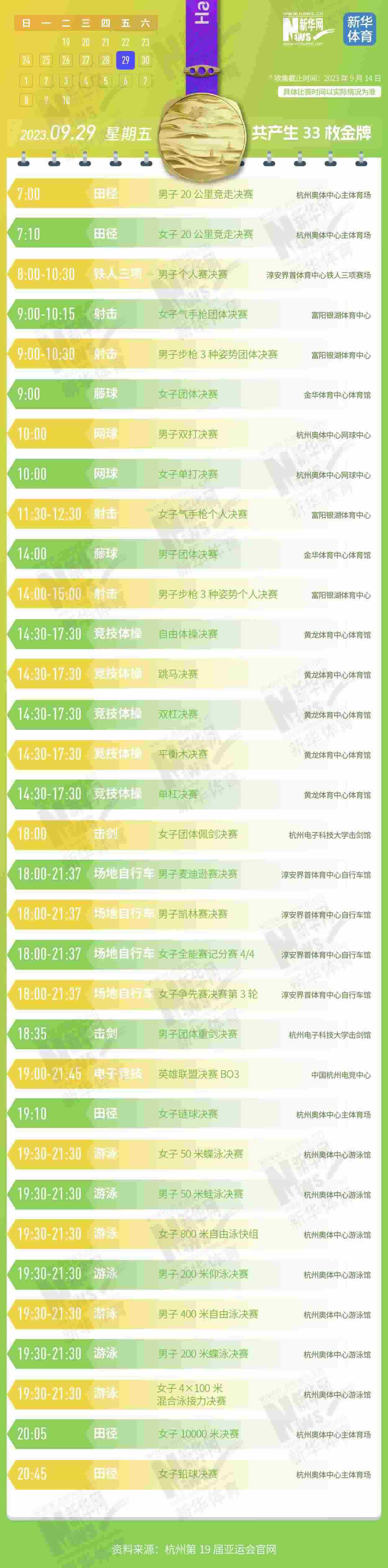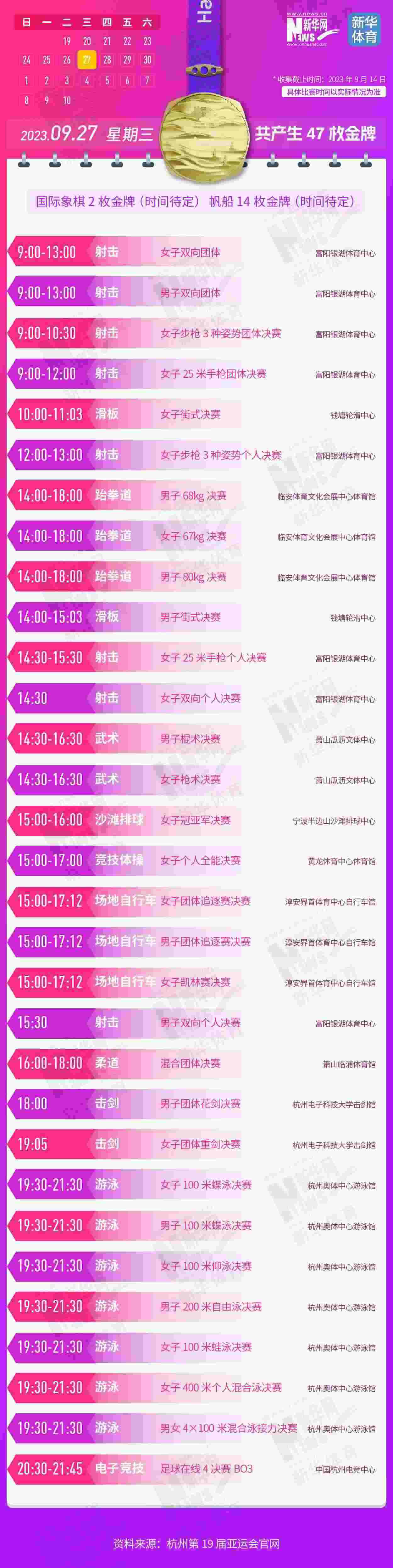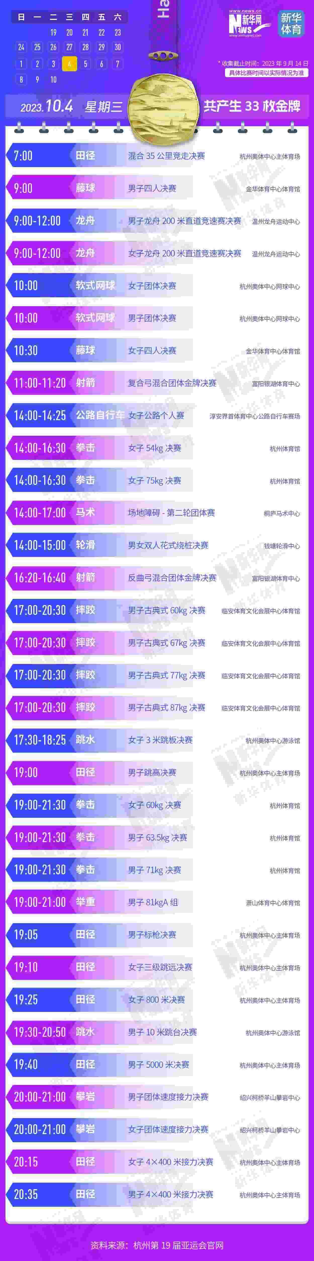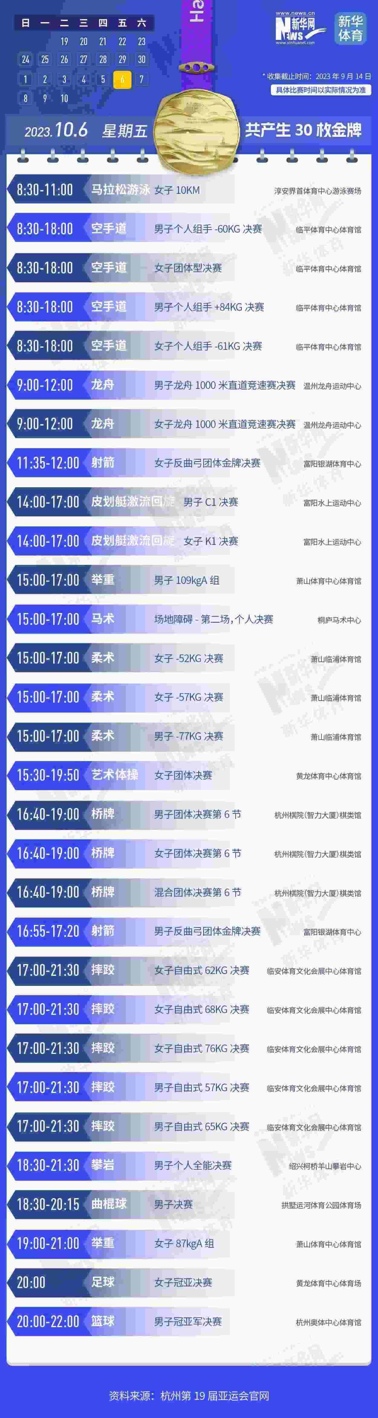 杭州第19屆亞運(yùn)會(huì)即將開(kāi)幕。本屆亞運(yùn)會(huì)將產(chǎn)生481枚金牌,快收藏這份金牌賽事日歷,助你精準(zhǔn)觀(guān)賽!