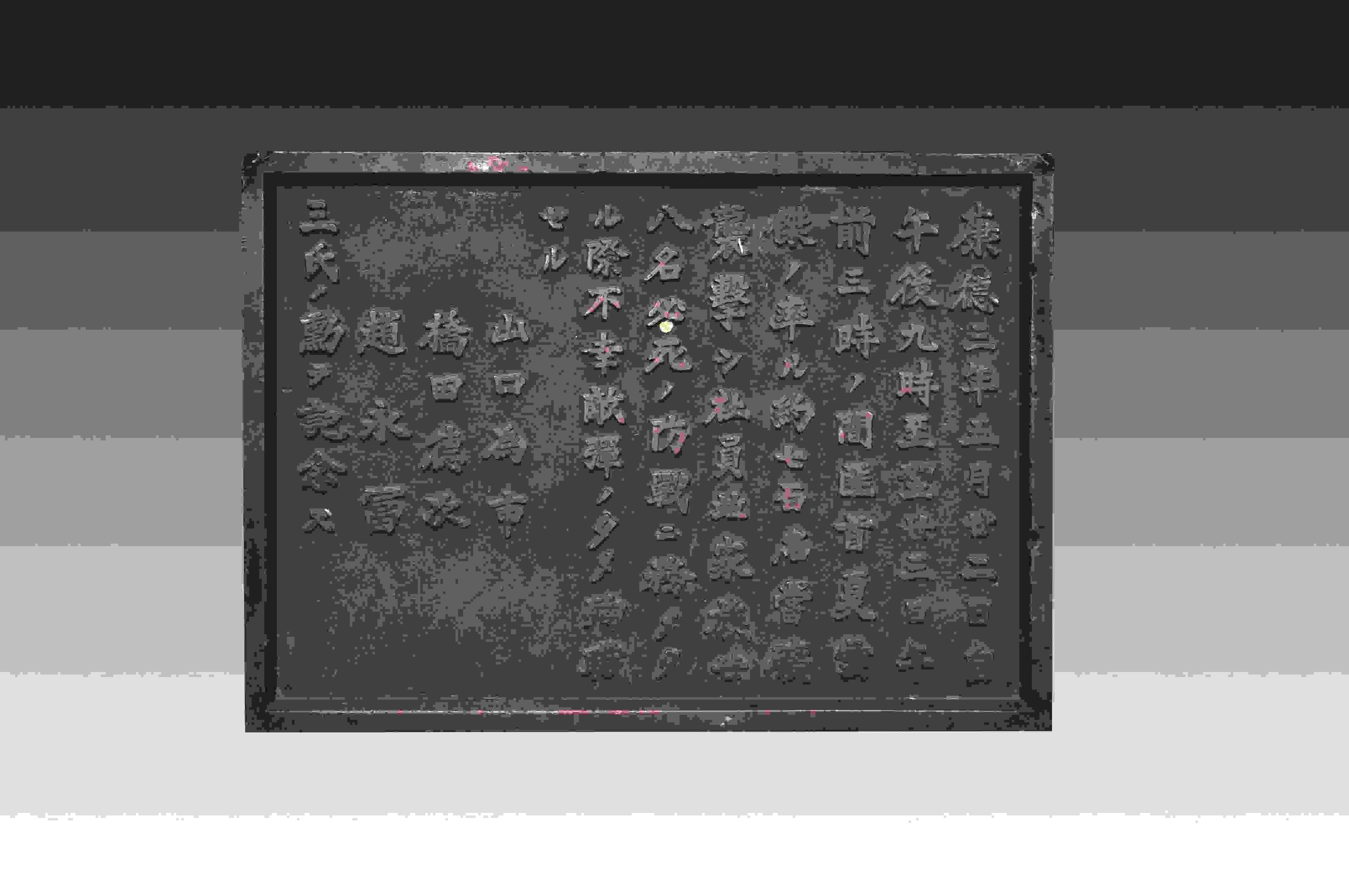 這塊碑文銅牌來(lái)自黑龍江鶴崗礦區(qū)的一座“忠靈塔”上,是日本侵略者為侵華戰(zhàn)爭(zhēng)中戰(zhàn)死的日偽軍而建。碑文銅牌,長(zhǎng)51厘米、高36.5厘米、寬2厘米、重12千克。上面的文字記載了日偽軍和抗聯(lián)戰(zhàn)士戰(zhàn)斗過(guò)程。從表述內(nèi)容來(lái)看,這塊碑文具有極大欺騙性。它制造了普通百姓遭土匪襲擊的“無(wú)辜”假象,妄圖以此加深東北民眾與革命隊(duì)伍之間的對(duì)立情緒。而事實(shí)真相是,1936年5月22日夜,東北人民革命軍第六軍軍長(zhǎng)夏云杰指揮六軍第一、二、三團(tuán),分兵兩路襲擊了鶴崗礦山。在我黨地下工作人員的密切配合下,順利解除了礦山警察二隊(duì)的全部武裝,并擊斃日軍指導(dǎo)官山口為市、橋田德次和偽礦山警察大隊(duì)隊(duì)長(zhǎng)趙永富。這次戰(zhàn)斗繳獲敵人大批槍支彈藥,我軍無(wú)一人傷亡。23日凌晨,夏云杰率領(lǐng)部隊(duì)攜帶戰(zhàn)利品凱旋。