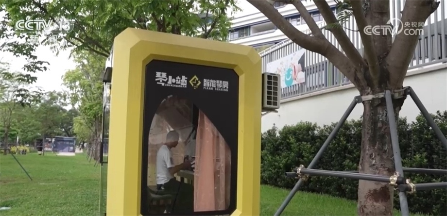 總臺央視記者 喬亞美:在深圳的街頭,我們發(fā)現了一些像我身后這樣的小型智能琴房,我們了解到,像這樣的智能琴房只需要通過小程序或者手機掃碼提前預約就可以免費使用了,我已經提前預約了這會兒的時間,我們一起去體驗一下。