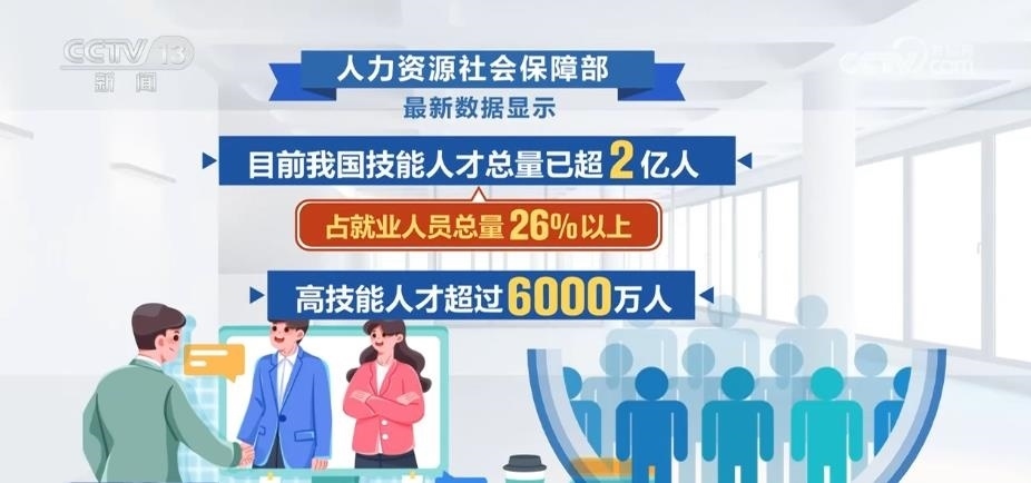 人力資源社會保障部數(shù)據(jù)顯示,目前,我國技能人才總量已超2億人,占就業(yè)人員總量26%以上;高技能人才超過6000萬人。各類技能人才活躍在生產(chǎn)一線和創(chuàng)新前沿,成為推動高質(zhì)量發(fā)展的重要力量。