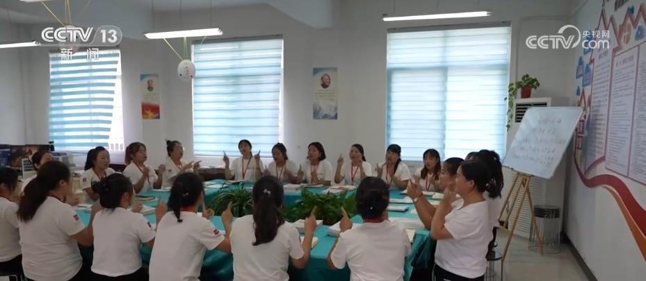 張彩麗就是經(jīng)過(guò)專業(yè)培訓(xùn)成了育嬰輔導(dǎo)員。她每天為11個(gè)孩子提供免費(fèi)養(yǎng)育指導(dǎo),除了和孩子互動(dòng)交流,更重要的是對(duì)養(yǎng)護(hù)人進(jìn)行輔導(dǎo),提升他們科學(xué)養(yǎng)護(hù)孩子的知識(shí)。