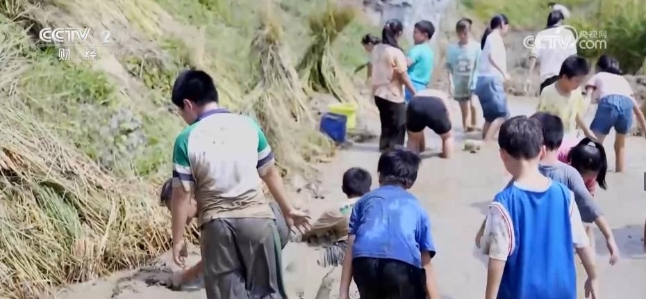 為慶?!熬扌偷尽痹嚪N成功,當(dāng)?shù)剡€舉行了一場“扮禾抓魚”比賽,村民們分成幾組,進行人工收割、踩禾桶脫粒、扎稻草。孩子們則跳進水溝抓魚,感受田園樂趣。