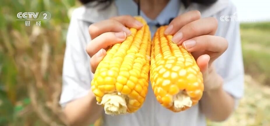今年儲大姐家玉米長得到底咋樣?你看我手里拿著這兩個玉米棒,左手就是儲大姐家的高密植玉米,右手是傳統(tǒng)種植的玉米,一對比很明顯,左手的玉米雖然看起來沒有傳統(tǒng)種植的個頭大,但是你看,籽粒長到了頂,棒芯小籽粒更緊實,分量更沉一些,可以說它很精壯。儲大姐也告訴我,這片田的玉米單產今年能夠達到850公斤以上,比傳統(tǒng)種植玉米單產提高了整整200公斤。