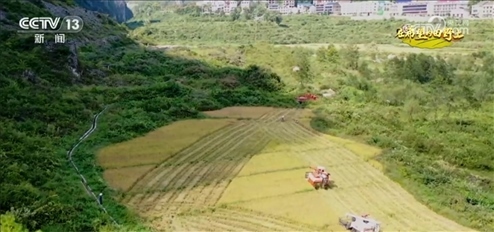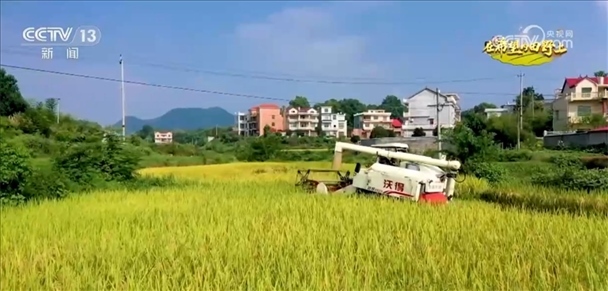 在湖南婁底漣源市湄江鎮(zhèn),水稻已經(jīng)進入收獲季,收割機正在地里忙碌,這一季收成很好。