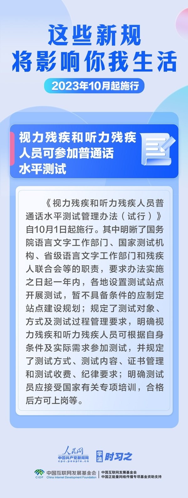 預(yù)防和制止假冒國(guó)企央企等違法行為;加強(qiáng)校外培訓(xùn)監(jiān)管;視力殘疾和聽力殘疾人員可參加普通話水平測(cè)試……10月,這些新規(guī)施行,將影響你我生活。