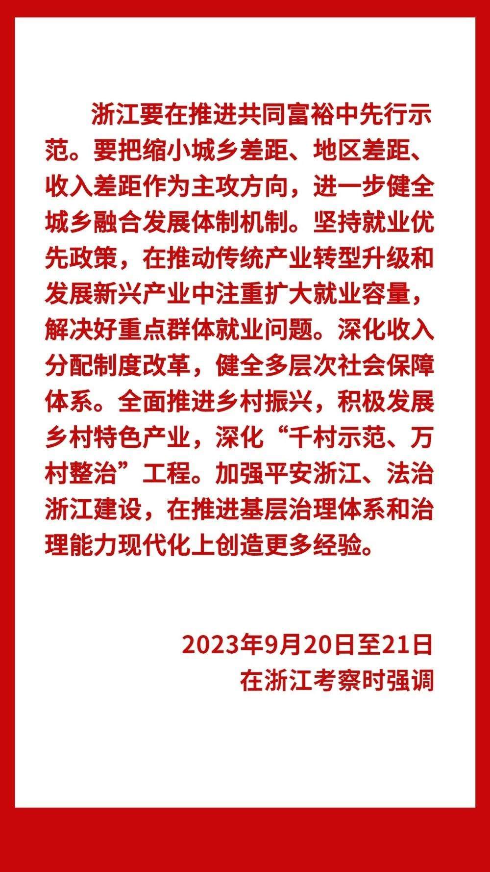 9月20日至21日,中共中央總書記、國(guó)家主席、中央軍委主席習(xí)近平在浙江考察。20日上午,習(xí)近平來到金華市義烏市后宅街道李祖村考察調(diào)研,先后在村黨群服務(wù)中心、“共富市集”、扎染商鋪等場(chǎng)所了解李祖村發(fā)展變化情況。他說,李祖村扎實(shí)推進(jìn)共同富裕,是浙江“千萬工程”顯著成效的一個(gè)縮影,要再接再厲,在推動(dòng)鄉(xiāng)村振興上取得更大成績(jī)。鄉(xiāng)村振興潛力無限、大有可為,鄉(xiāng)親們要努力奮斗,一起奔向共同富裕的美好明天。