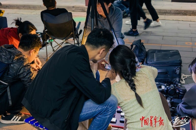 在西安,游客們在“大唐不夜城步行街”標(biāo)識(shí)下,打卡拍照。中青在線記者 白楊/攝