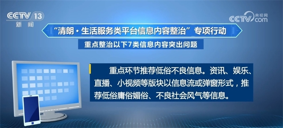 重點(diǎn)環(huán)節(jié)推薦低俗不良信息。資訊、娛樂、直播、小視頻等版塊以信息流或彈窗形式,推薦低俗庸俗媚俗、不良社會(huì)風(fēng)氣等信息?!?/p>