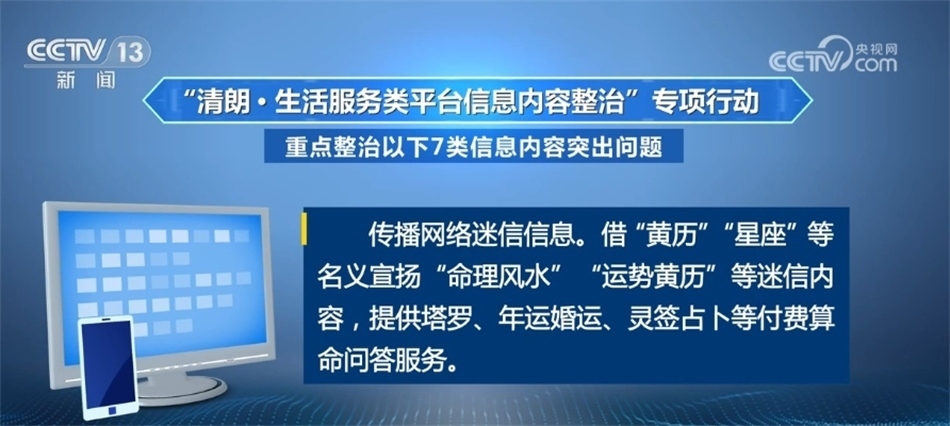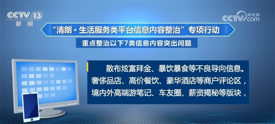 此次專項(xiàng)行動(dòng)覆蓋團(tuán)購評(píng)價(jià)、婚戀交友、搜索引擎、影視點(diǎn)評(píng)、天氣日歷、旅游出行、網(wǎng)絡(luò)購物、地圖導(dǎo)航、本地生活、運(yùn)動(dòng)健康、實(shí)用工具等各類生活服務(wù)平臺(tái),重點(diǎn)整治以下7類信息內(nèi)容突出問題?! ?/p>