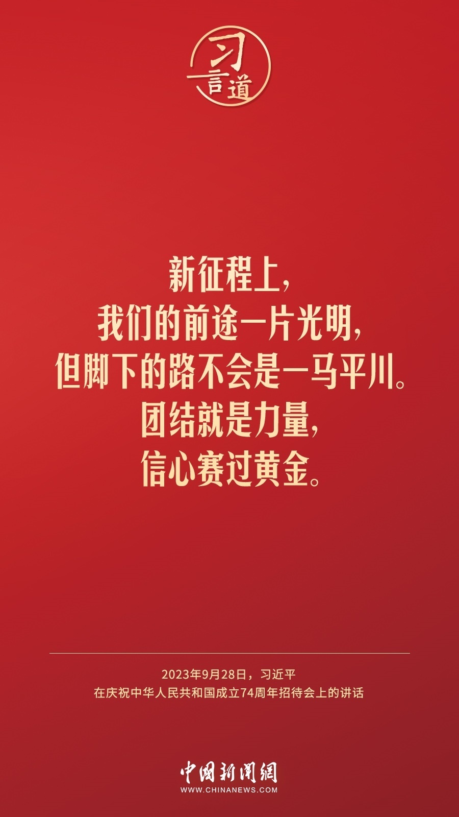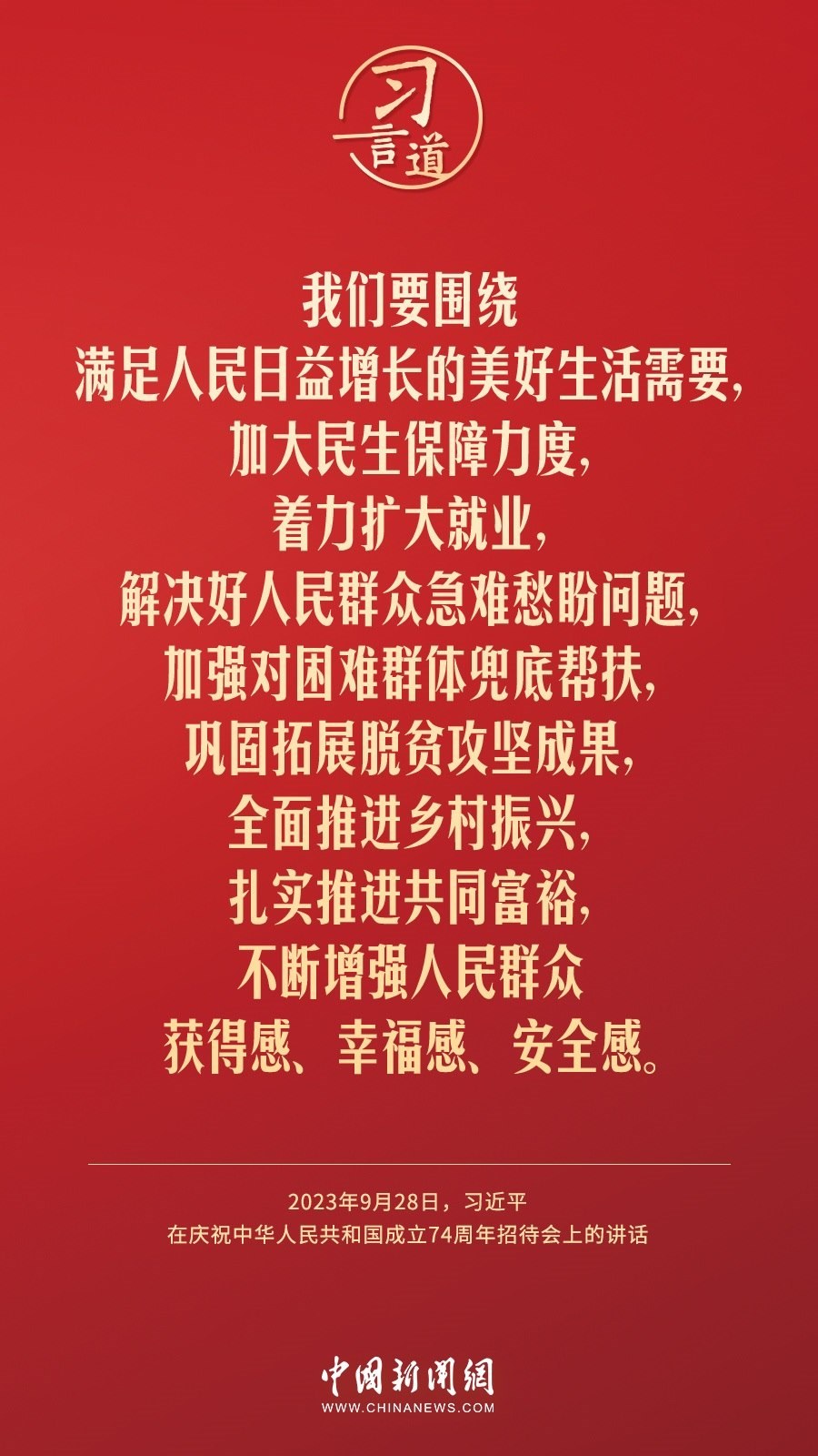 慶祝中華人民共和國(guó)成立74周年招待會(huì)28日晚在人民大會(huì)堂舉行。中共中央總書(shū)記、國(guó)家主席、中央軍委主席習(xí)近平出席招待會(huì)并發(fā)表重要講話。他強(qiáng)調(diào)——